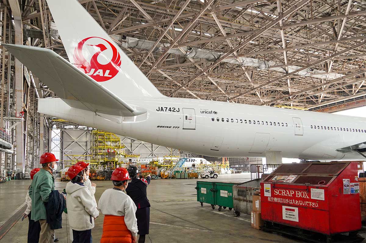 JAL SKY MUSEUMはJALが社会貢献の一環として無料で一般公開(完全予約制)しており、空の仕事やJALの歴史に触れ、本物の航空機を間近でご覧いただける体験型のミュージアムです。ミュージアムスペースは自由に見学することができ、JALの創成期から現在にいたるまでのサービスや史料を閲覧できるほか、JALスタッフがどんな仕事をしているか、空旅の安心・安全をどのようにつくりあげているかなどを紹介するエリアです。ミュージアムスペースの見学後は、JALスタッフによるガイドのもと、航空機のメンテナンスやチェックをおこなう実際の格納庫で、整備士が整備している姿や、現役の航空機をご覧いただくことができます。また、オリジナルグッズを取り揃えたミュージアムショップも施設内にご用意しています。ここでしか購入できないグッズもあり、見学の記念やお土産品に最適です。